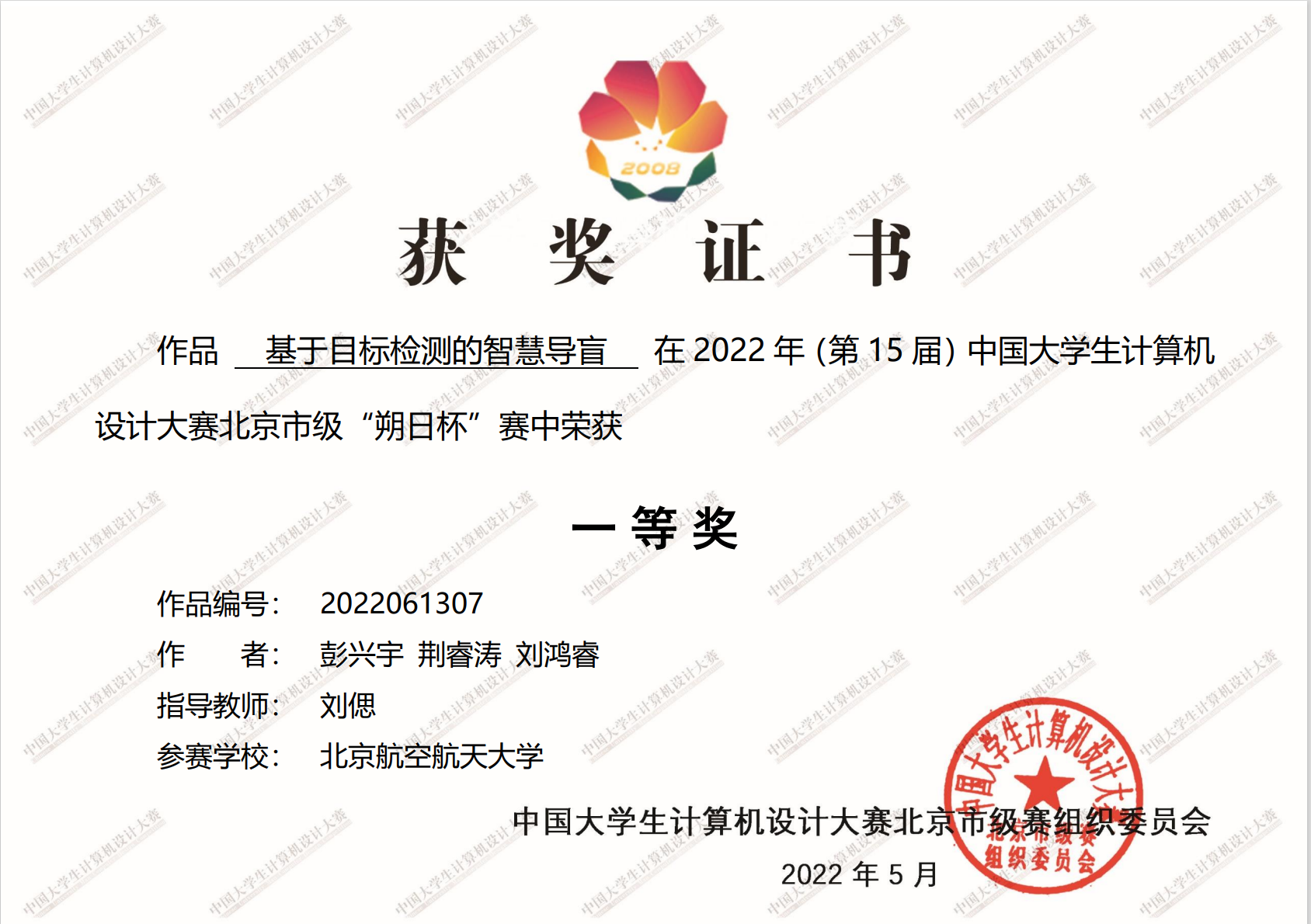 在科研道路上逐渐入门后,彭兴宇同学还思考如何展现新时代青年的使命与担当。他将所学知识应用于改善社会残障人士的生活质量,带领团队在中国大学生计算机设计大赛智慧导盲赛道中获北京市唯一的一等奖,并将研究成果撰写论文投稿至国际顶级会议ICRA和CVPR。回想自己的科研之路,彭兴宇同学说:“和大多数同学一样,我在刚入学时也觉得科研二字‘高大上’,看起来遥不可及。但万事开头难,当我踏出第一步,开始在科研中考虑实际问题并寻求解决时,我收获颇丰。”