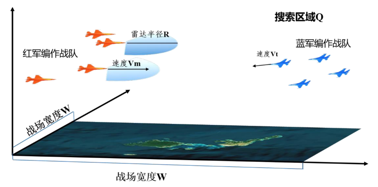 题目要求参赛者针对指定的无人机性能、空域和目标飞行器集群,完成多无人机协同决策,完成对目标飞行器的协同探测和攻击,实现最优的作战效能。