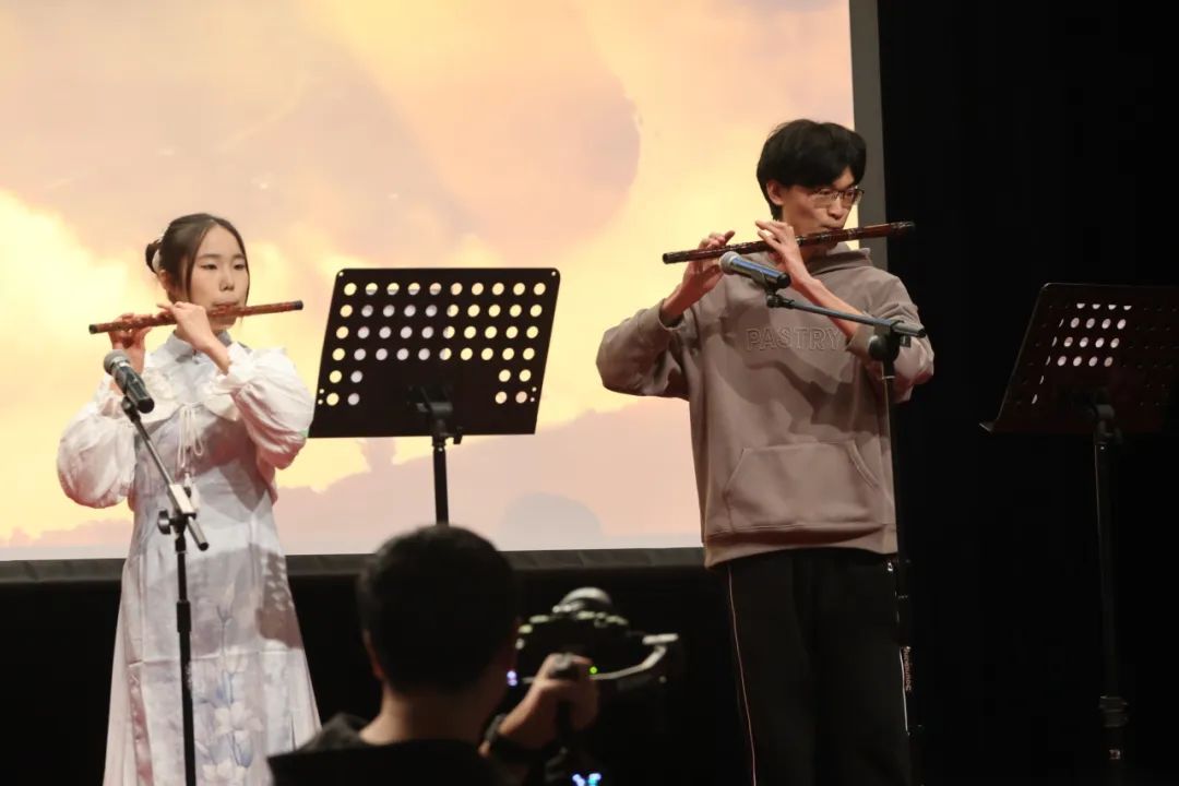 精妙的吹奏技艺在舞台上宛如流动的光影,勾勒出一幅虚实交错的画卷。音符如涟漪般扩散开来,触动每一位观众的心弦。饱满的情感,将观众带入一段美妙的梦境。