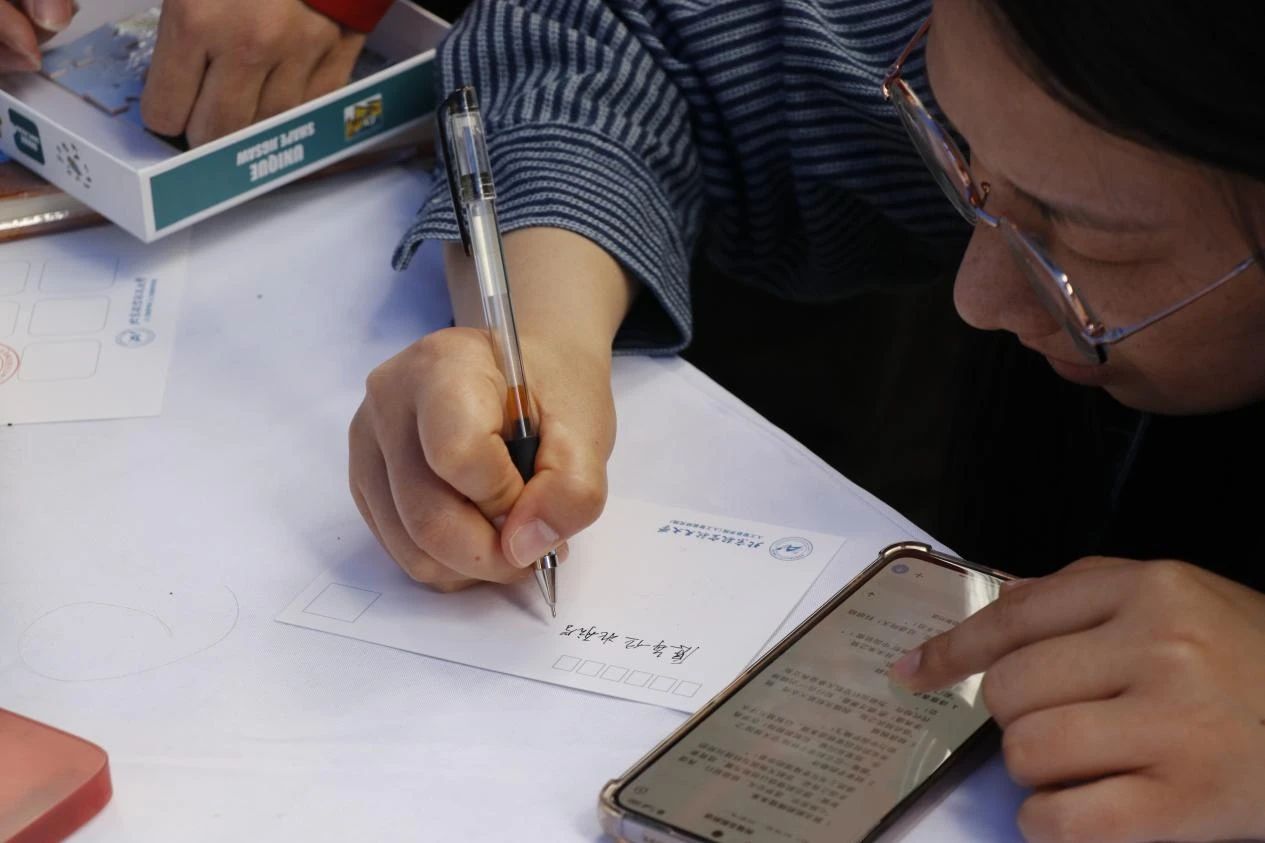 同时,现场还准备了多个趣味横生的活动。“北航寄语” 环节,同学们在明信片上认真书写着对母校的深情祝福,话语质朴却饱含深情,每一字每一句都彰显着对北航的热爱与感激。