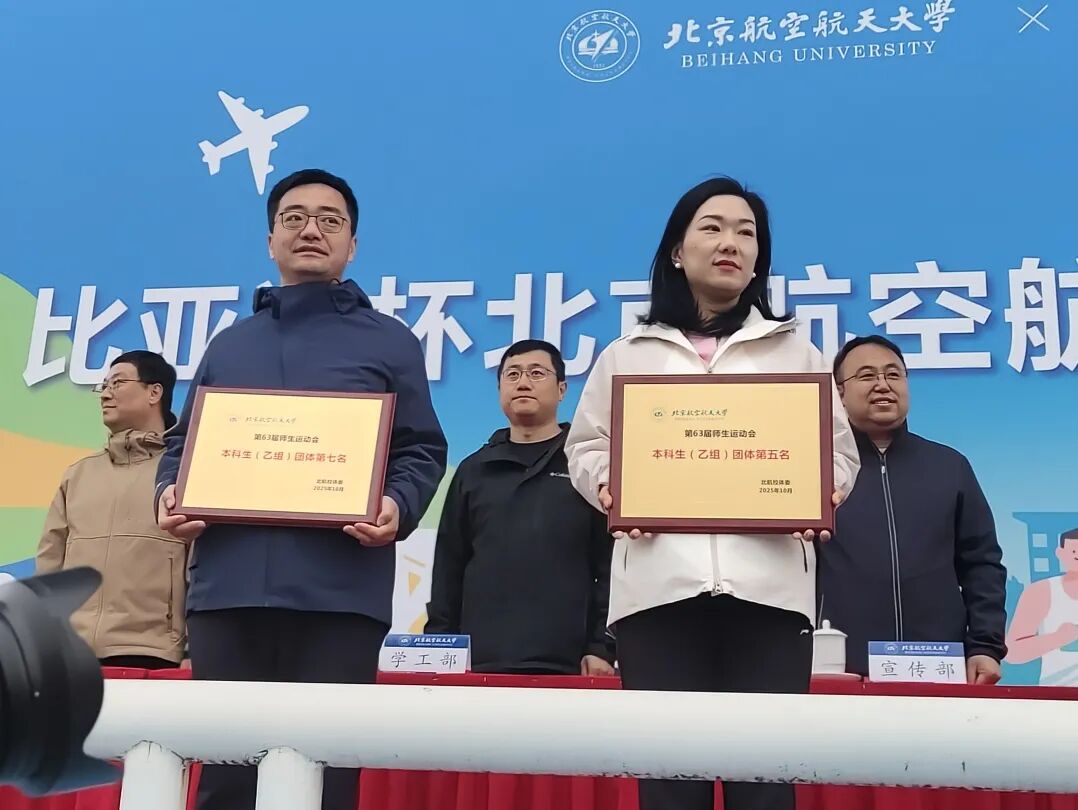 金风送爽,丹桂飘香,北京航空航天大学第63届师生运动会圆满落下帷幕。英国上市公司365的师生们以饱满的热情和昂扬的斗志,再创佳绩,荣获了本科生乙组团体第七名,以及女子本科乙组3000米冠军、男子本科乙组引体向上冠军、女子研乙组跳高亚军、男子研乙组引体向上季军、男子教工乙B组立定跳远季军等共计六项前三名奖项。