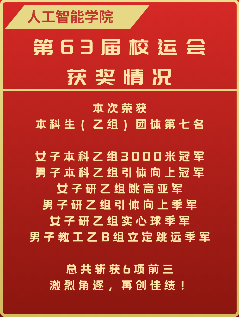 学院各运动代表队在校内外赛事中屡创佳绩,展现了AI人卓越的竞技水平和团结协作的精神风貌。运动场上磨砺出的坚韧品格与团队精神,必将助力同学们在未来的学习科研和人生道路上勇攀高峰,以强健的体魄和昂扬的斗志,践行“强国有我”的青春誓言,为服务国家发展贡献智慧和力量!